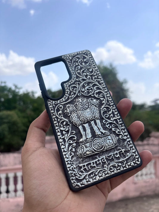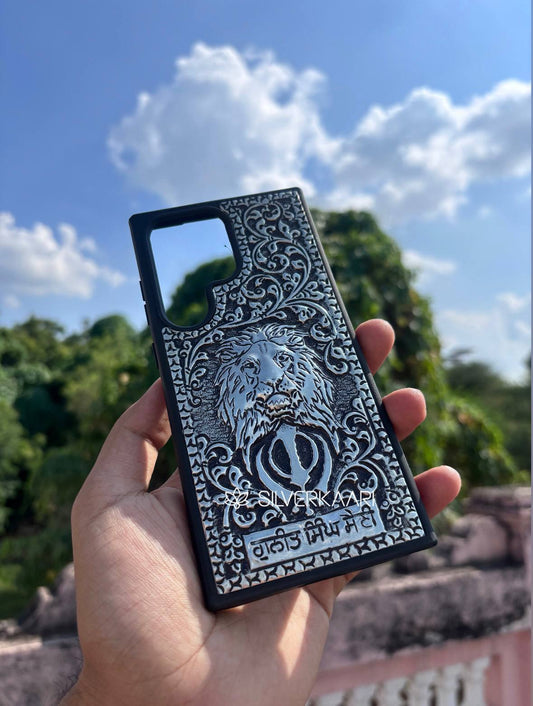 Lion & Khanda Sikh Royal Silver Mobile Cover