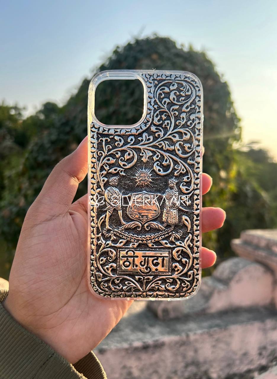 Experience the grandeur of Mewar with this exclusive silver mobile case, featuring the iconic Sisodia Mewar logo. Handcrafted with intricate details, this case is a tribute to the rich heritage of the Sisodia dynasty, blending tradition and modern luxury for a truly royal accessory.