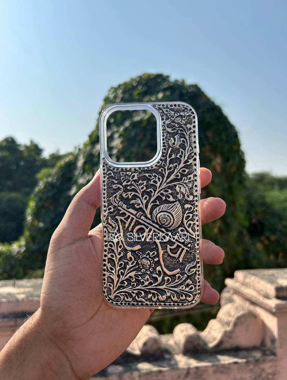 Carry divinity in your hands with the Sanwariya Silver Mobile Cover, crafted from 92.5 sterling silver by skilled artisans with over 20 years of expertise.