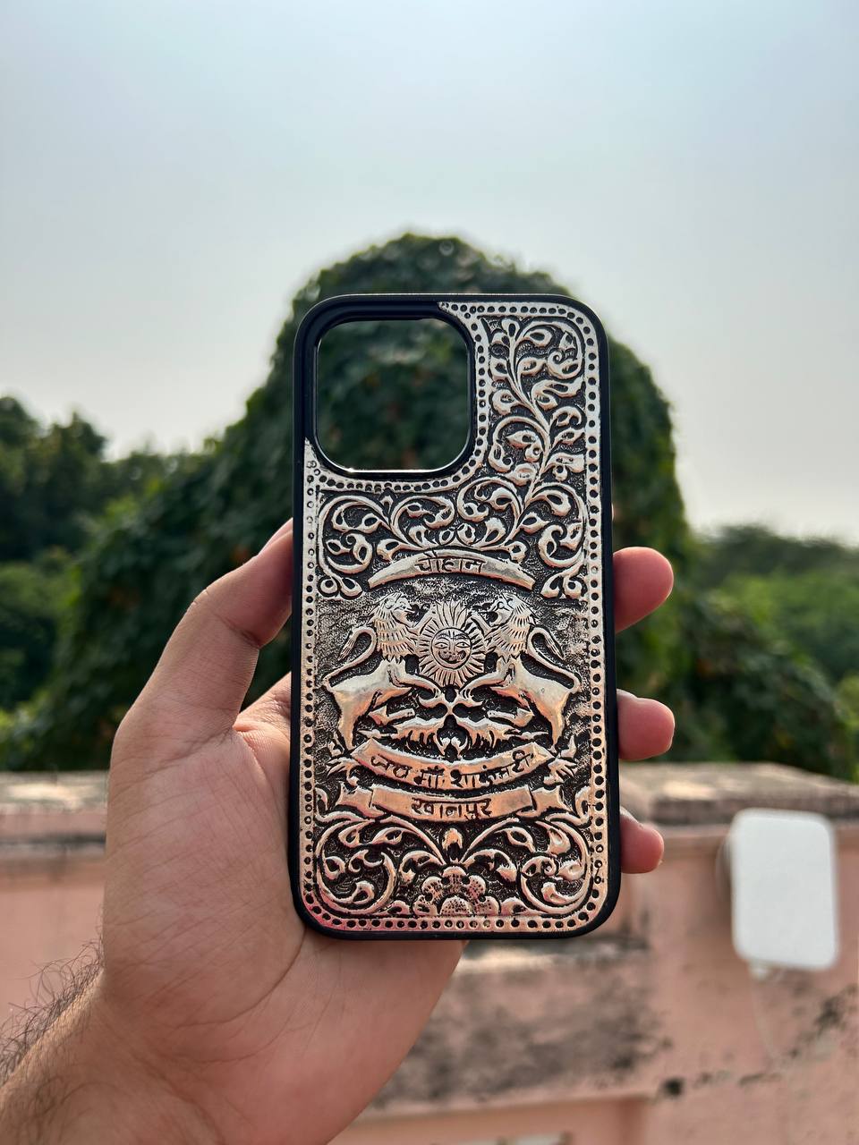 Chauhan elegance redefined—our silver phone case showcases timeless heritage with a touch of royal sophistication.