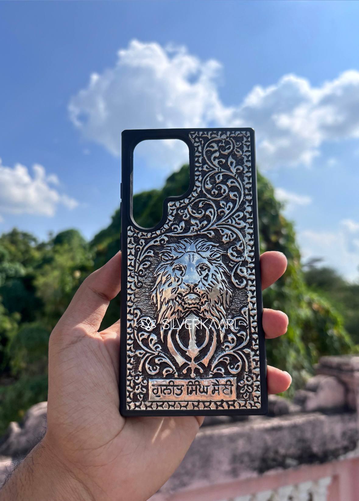 Lion & Khanda Sikh Royal Silver Mobile Cover