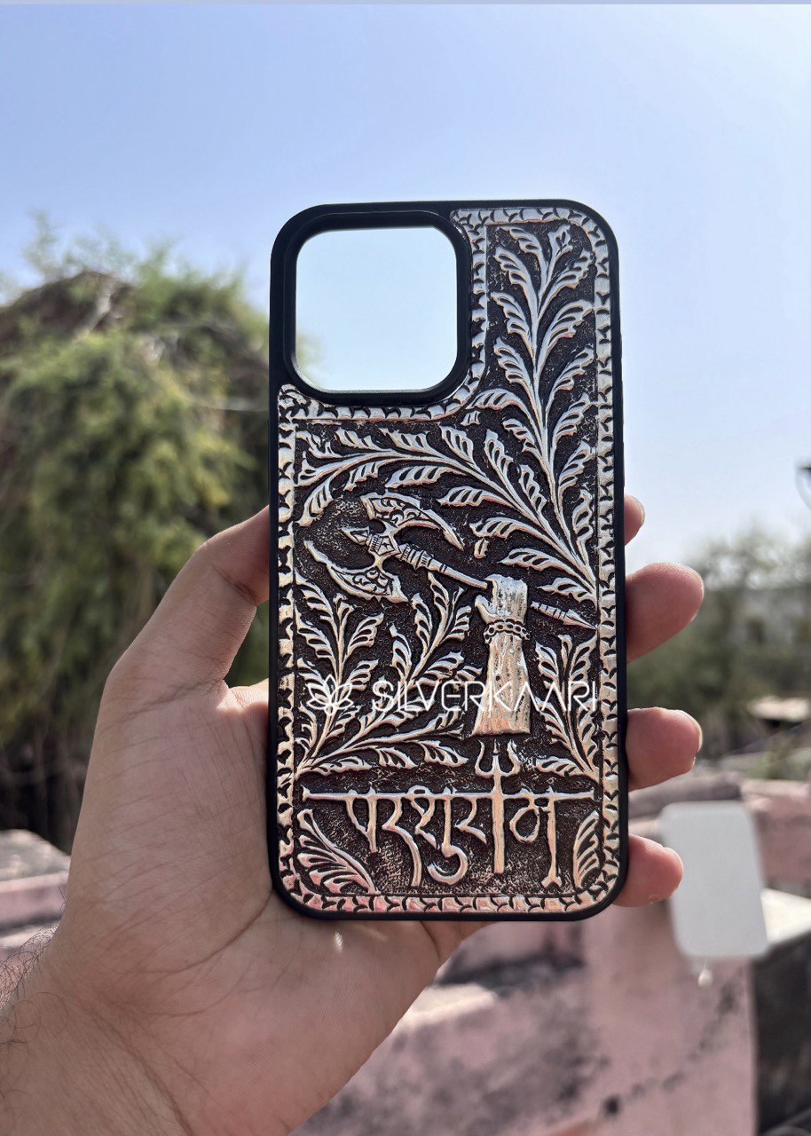 Invoke strength, righteousness, and heritage with the Lord Parshuram Silver Mobile Case by Silverkaari. Handcrafted in 92.5 pure silver, this powerful design honors the warrior sage, the sixth avatar of Lord Vishnu — known for upholding dharma with courage and devotion. A rare piece for those who stand for truth and tradition.