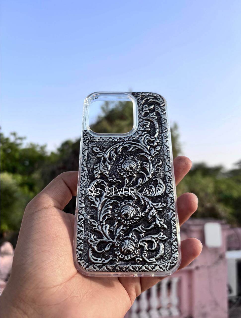 Embrace elegance with the Floral Silver Mobile Case by Silverkaari. Intricately engraved in 92.5 pure silver, this handcrafted cover features a timeless floral design — a symbol of grace, heritage, and artistic mastery. Perfect for those who appreciate detail, tradition, and beauty in every layer.