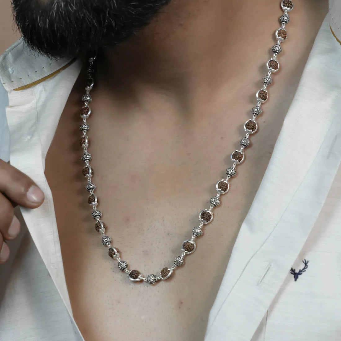 Rudraksha Capping Silver Mala (Om Beads)