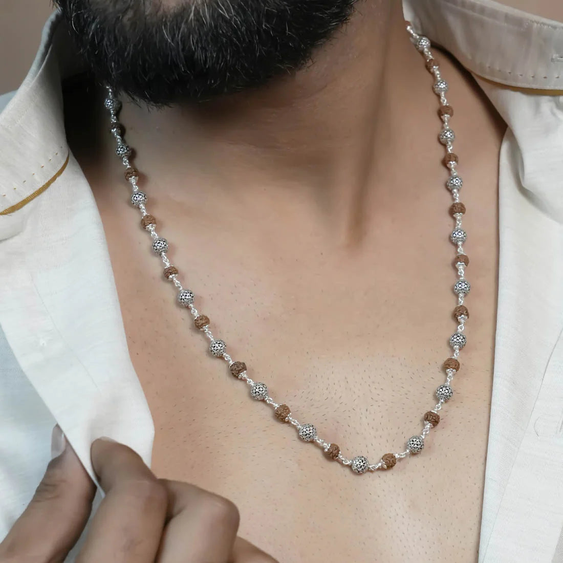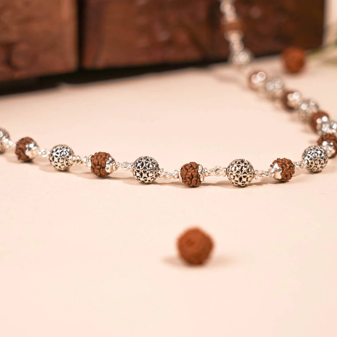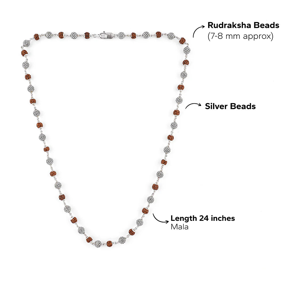 - Beads Count: 22 Rudraksha Beads + 22 Silver Beads