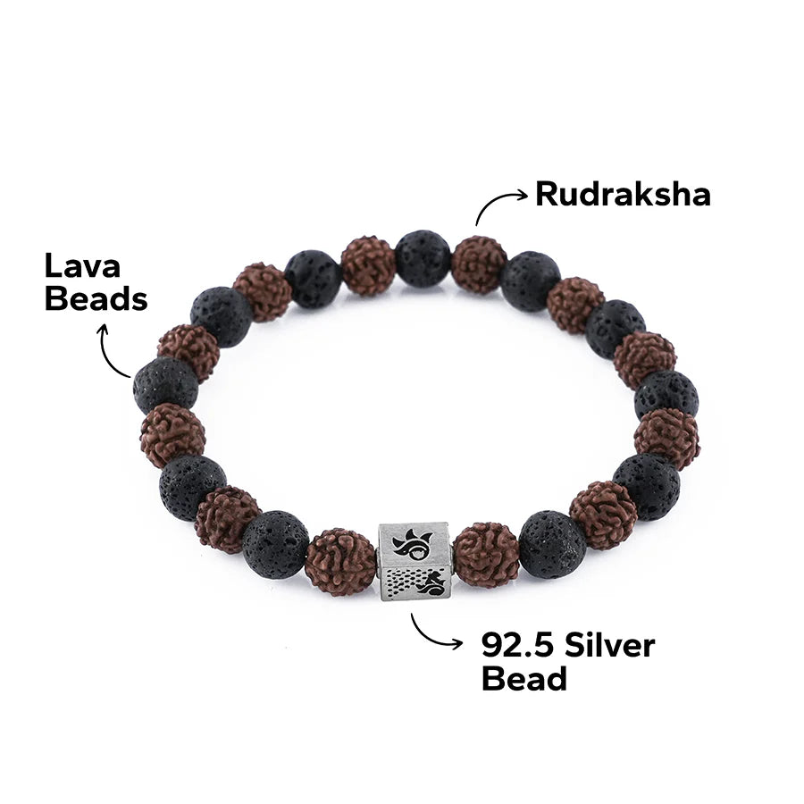 - Material: 5 Mukhi Rudraksha Beads + Lava Stones + 92.5 Silver Om Bead