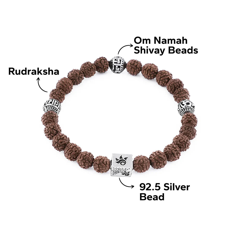 - Design: Traditional Rudraksha bracelet with intricately carved Om Namah Shivay silver beads