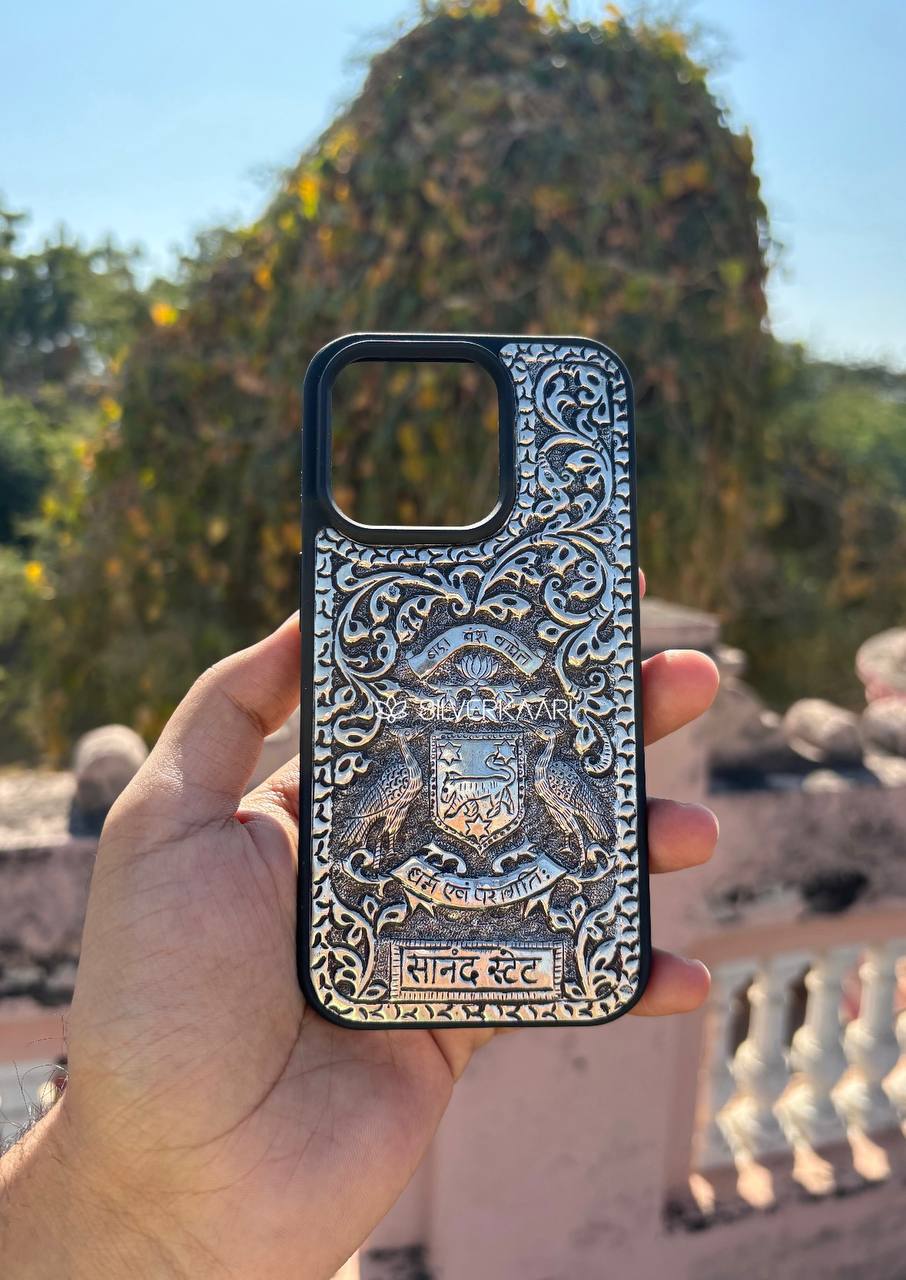 Show your Vaghela pride with this handcrafted silver mobile case by Silverkaari. Featuring the Vaghela clan emblem engraved in certified 92.5 pure silver, this cover blends heritage, strength, and regal craftsmanship — perfect for those who carry their identity with elegance.
